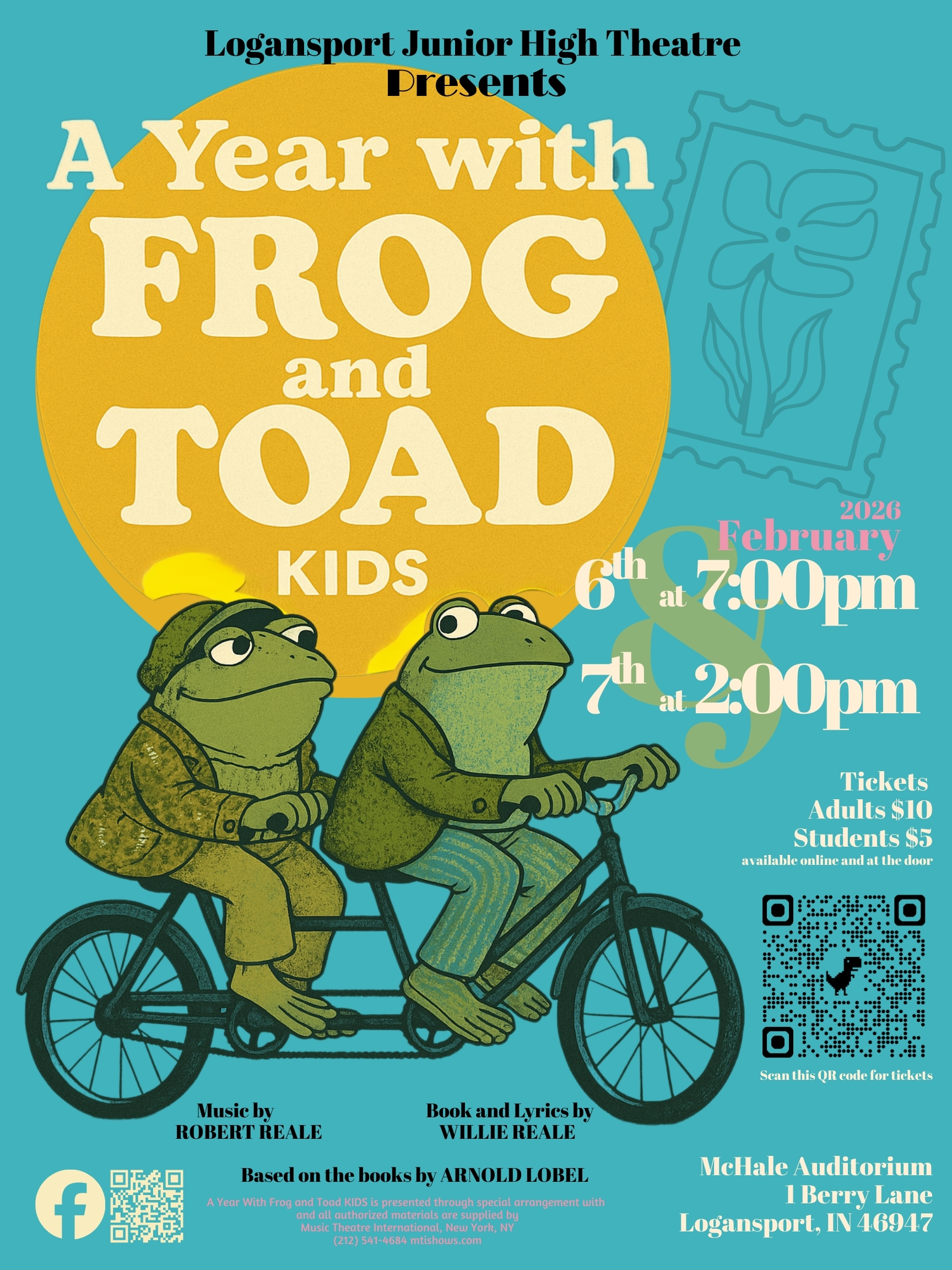 Logansport, Indiana – On February 6th at 7 p.m. and February 7th at 2 p.m., the Logansport Junior High Theatre invites you to McHale Performing Arts Center for a delightful journey through the seasons with “A Year with Frog and Toad KIDS.”