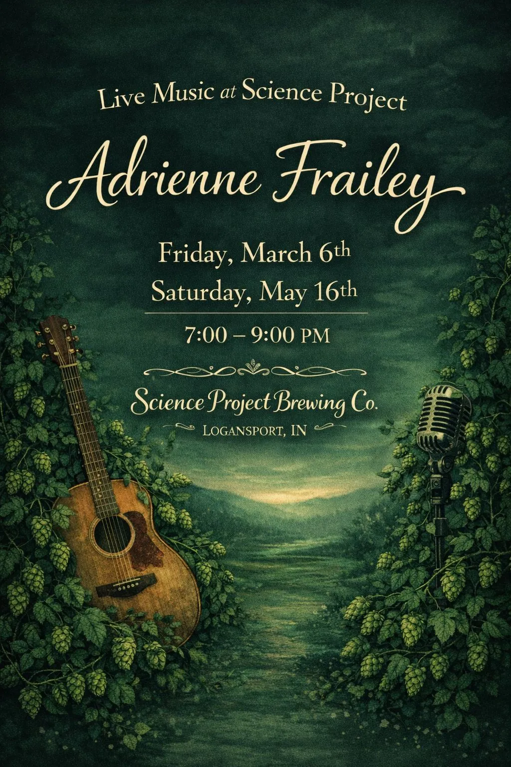 Join Science Project for an evening of live music with Adrienne Frailey, a talented vocalist known for her rich sound and thoughtful songwriting.