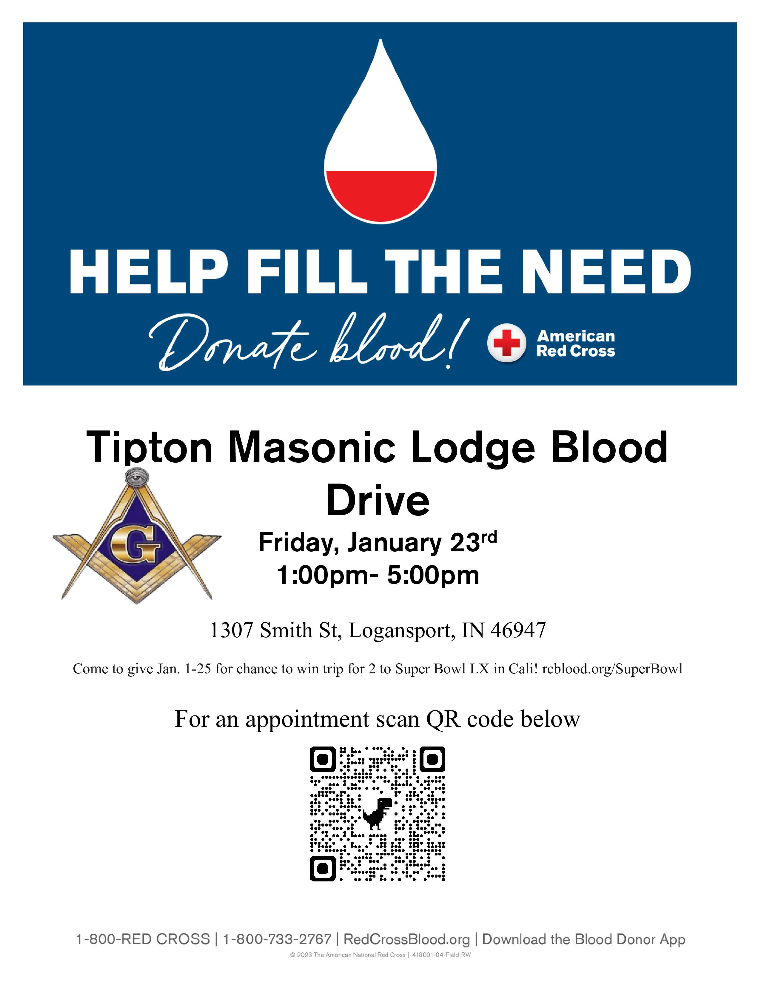 Note: Come to give Jan. 1-25 for chance to win trip for 2 to Super Bowl LX in Cali! rcblood.org/SuperBowl