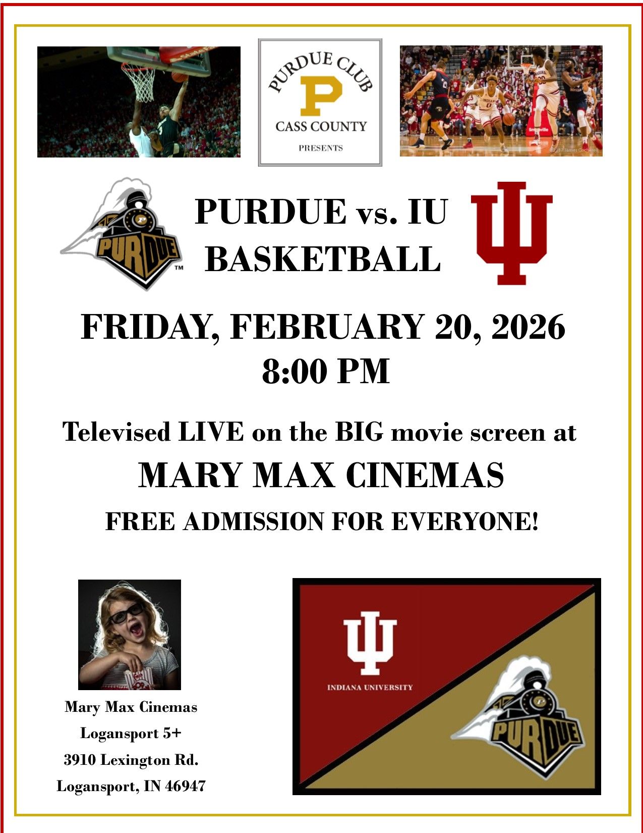 Sponsored by the Cass County Purdue Club. Friday Feb 20 at 8pm. FREE admission and get your tickets at the theatre.