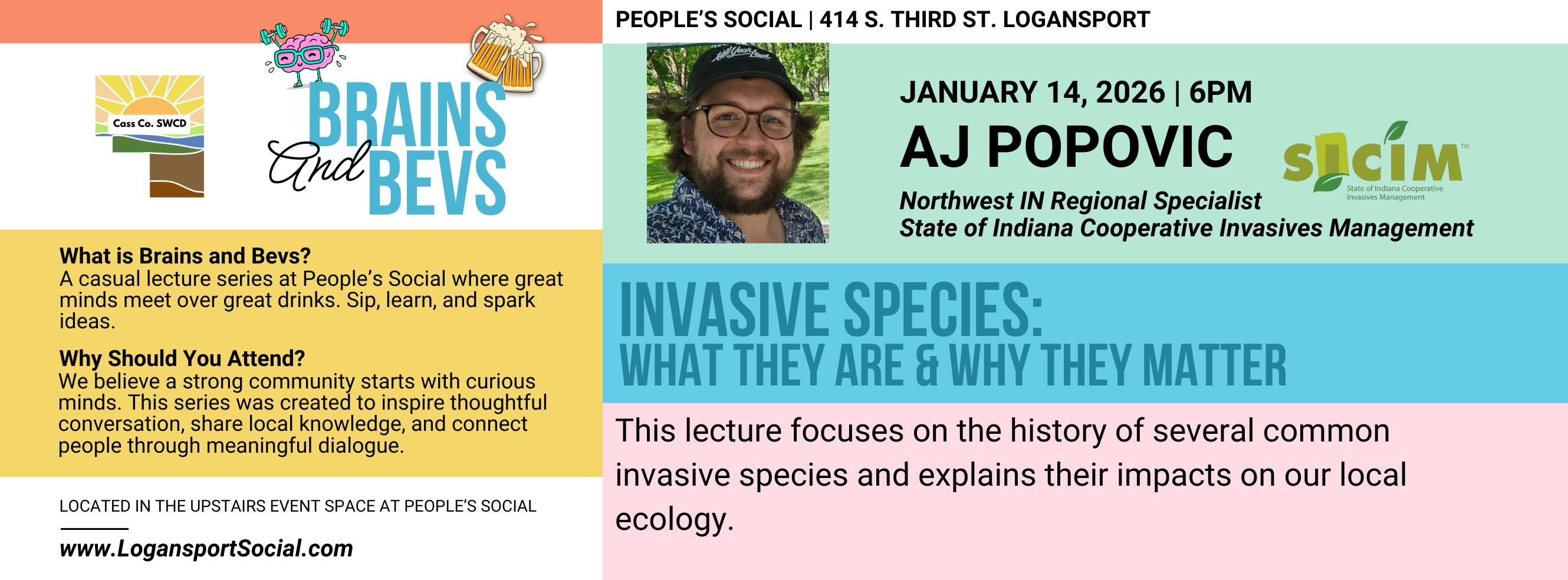 Grab a drink and settle in for an engaging, eye-opening talk on invasive species and their impact on our local environment. Hosted by AJ Popovic, this session explores the history of several common invasive plants and animals, how they arrived here, and why they pose a real challenge to Indiana’s ecosystems.