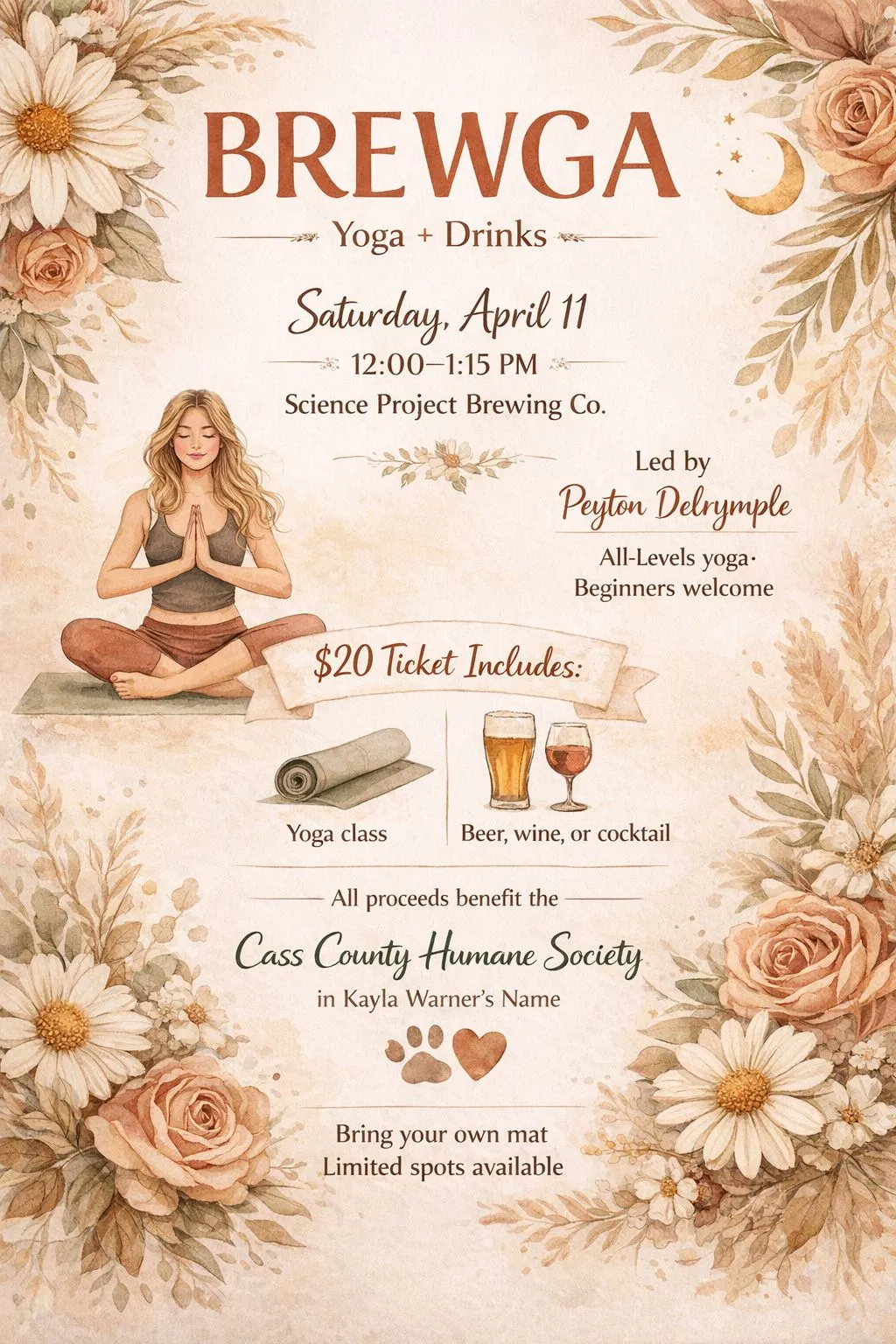 $20 (includes yoga + one drink)