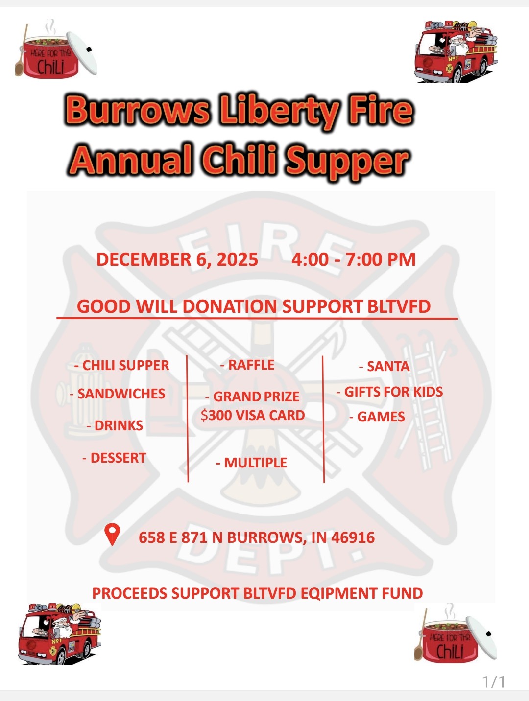 Burrows Liberty Twp Fire Department Chili Supper