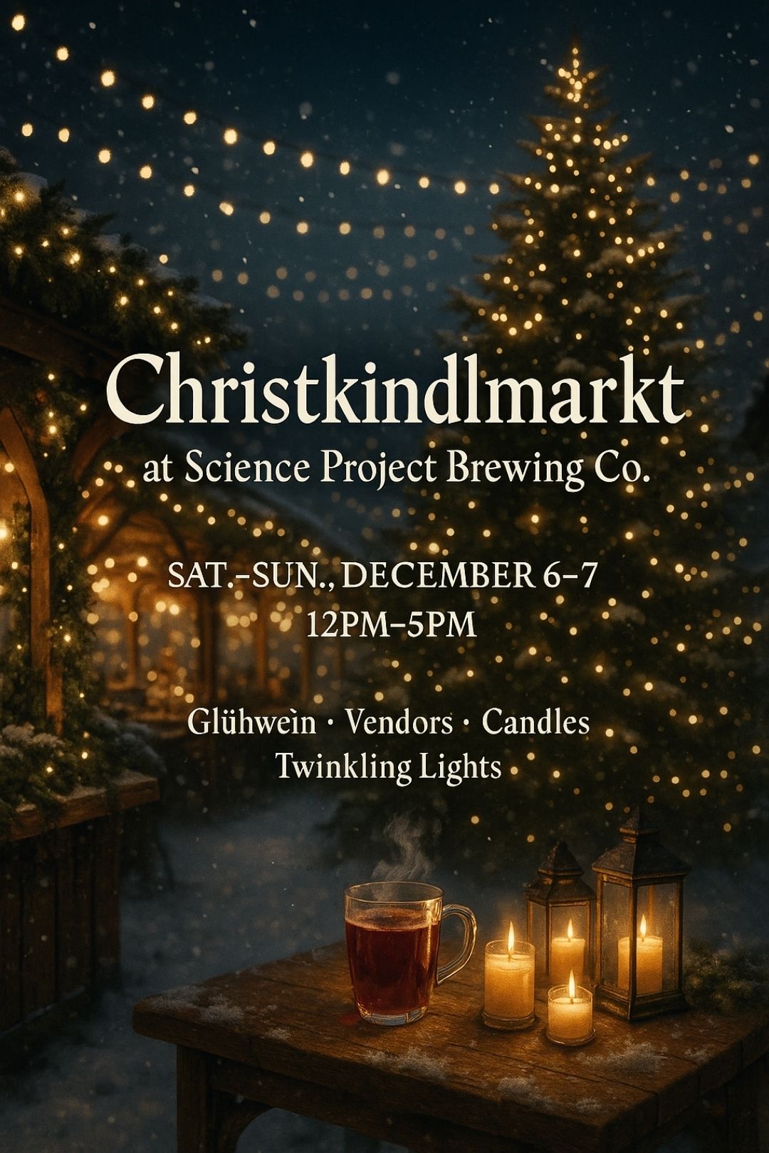 Step into the magic of the holidays with us at Science Project Brewing Co. as we transform our space into a cozy Christkindlmarkt — a traditional German Christmas market full of holiday cheer, handmade goods, and festive flavors