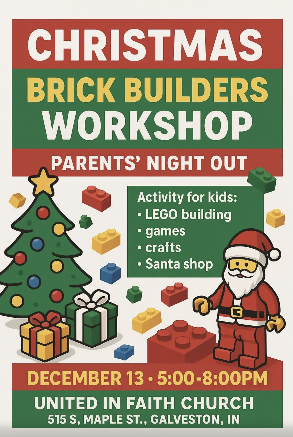 This event is for children of all ages. Parents can have a night out while their kids have a fun time with Lego building, games, crafts, and a Santa shop. This event will be from 5-8 pm at United in Faith Church of Galveston. Parents will need to pre register their children for this event by seeing the church Facebook page or calling the church office.
