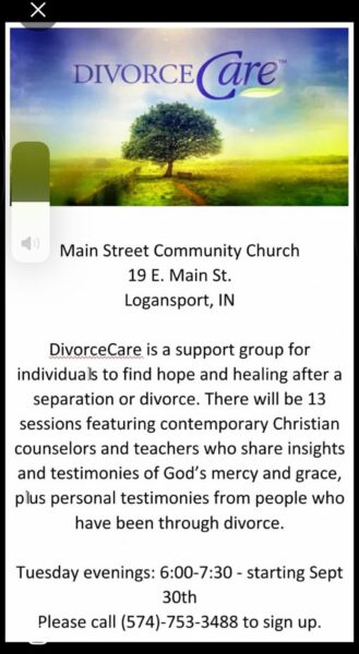 This class starts September 30th at 6 p.m. every Tuesday for 13 weeks at Main Street Community Church 19 E Main St Logansport, In.