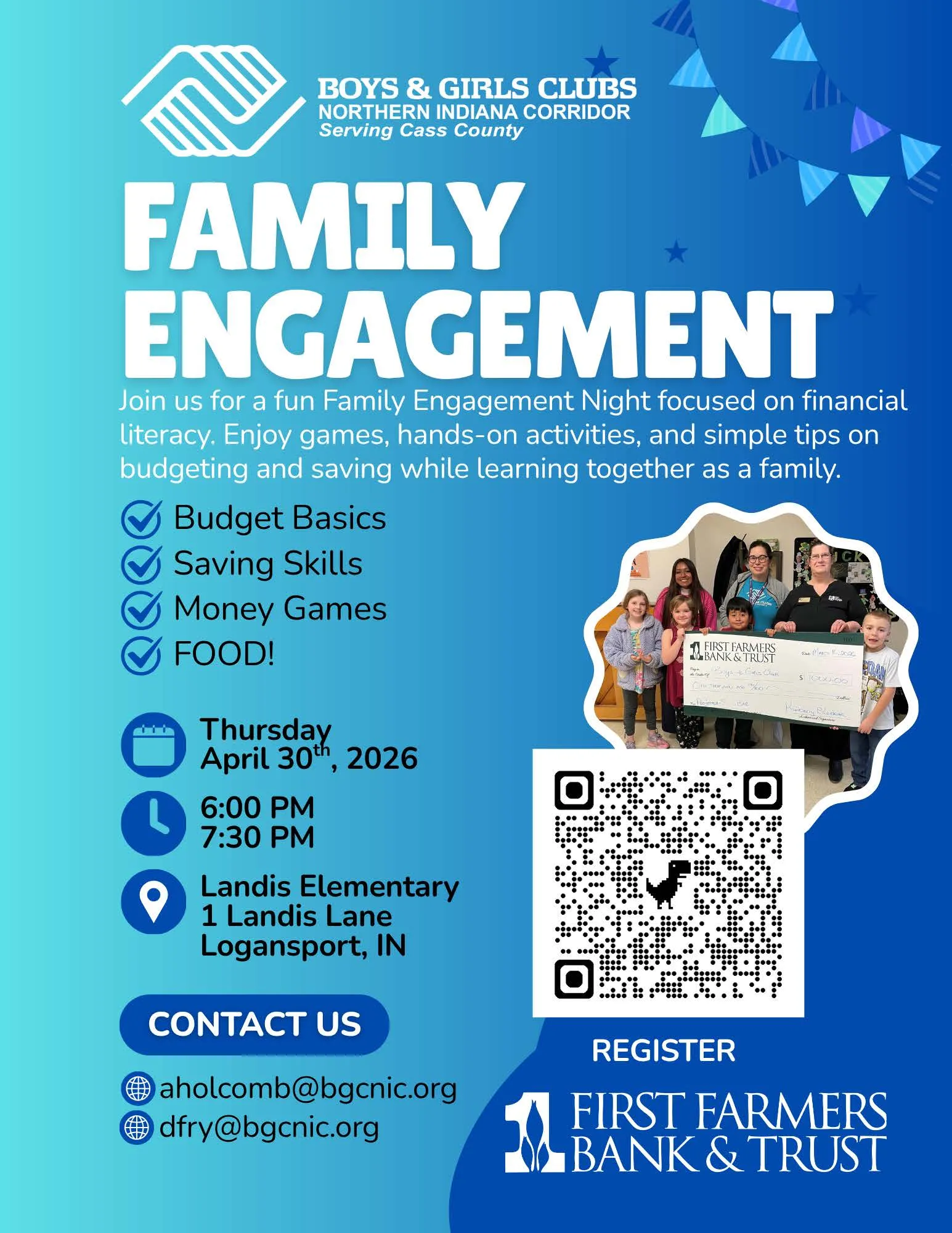 Cass County families, you are invited to our upcoming Financial Literacy Family Engagement Night sponsored by First Farmers Bank & Trust