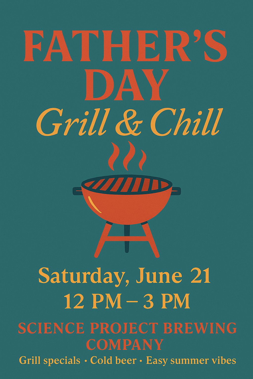 Celebrate Father’s Day with a relaxed afternoon at Science Project Brewing Company for our Grill & Chill! We’re firing up the grill and pouring cold beer for an easygoing daytime hang that’s perfect for dads, families, and anyone who just wants good food and summer vibes.