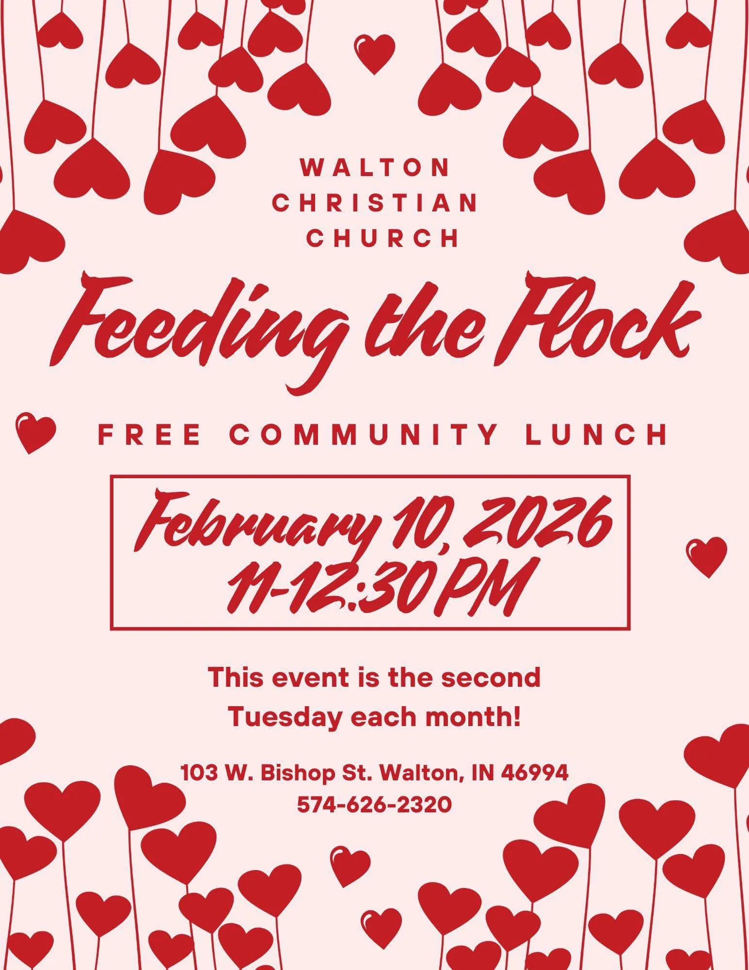 Free community lunch. This event is the second Tuesday of each month.