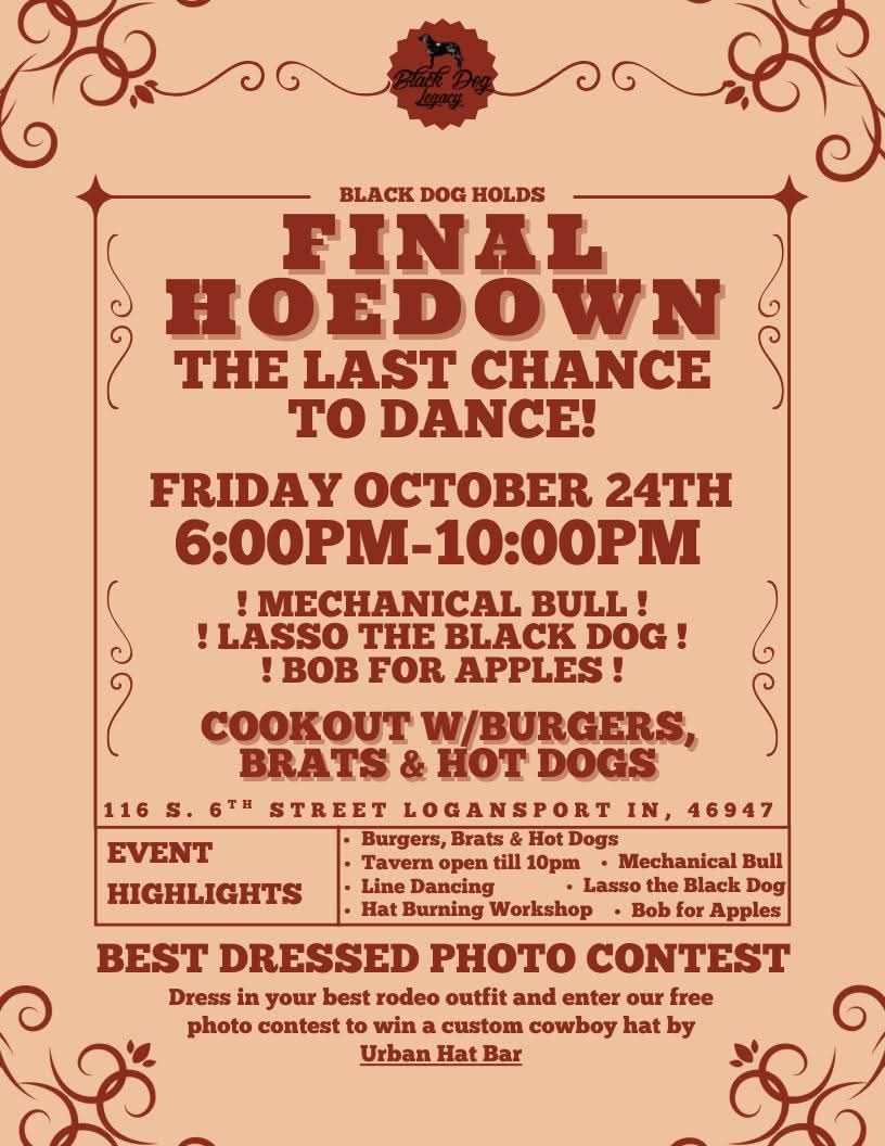 The Last Chance to Dance! In addition to line dancing, join in the fun on the mechanical bull, lasso the black dog, bob for apples, and enjoy drinks from our tavern and hot food right off the grill!