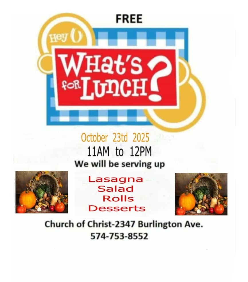 Church of Christ at Logansport will be serving lasagna, salad, rolls and desserts from 11 a.m. to 12 p.m. on Oct. 23, 2025