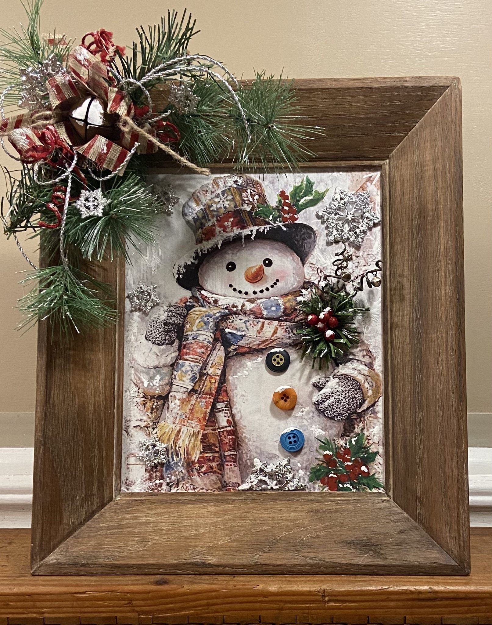 You will have a variety of frames, decoupage papers, paints and embellishments to choose from to make your very own unique holiday decoration.