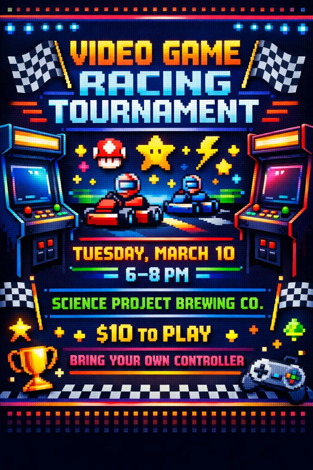 Get ready for a night of fast laps, friendly competition, and retro arcade vibes! Join us for a Video Game Racing Tournament featuring head-to-head races, classic tournament play, and plenty of bragging rights.