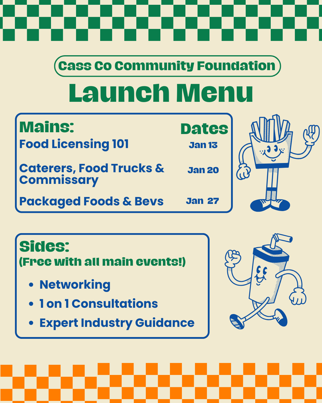 Launch Menu is a brand new, monthly, educational series designed to provide you with the knowledge and resources to turn your recipe into a reality and launch the food business you’ve always dreamed of!We’re kicking off 2026 with a special 3 part series. Yes, you heard that right! 3 weeks, 3 free to attend presentations on starting a food business!
