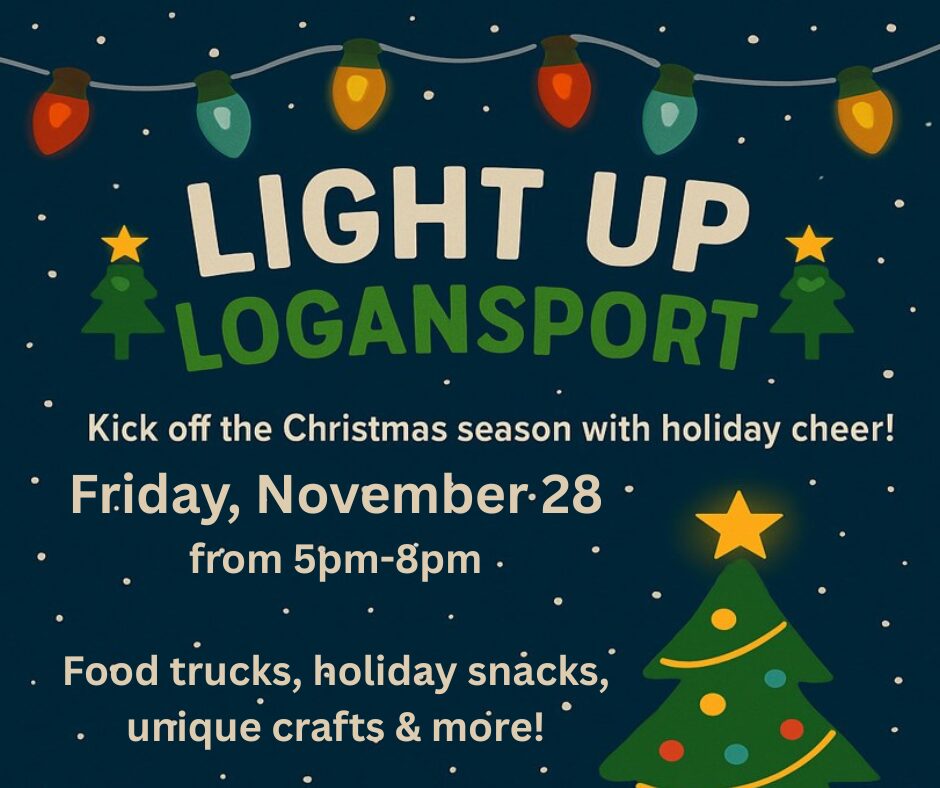 🎄 Light Up Logansport kicks off the holiday season on Friday, November 28 from 5–8 pm — enjoy food trucks, baked goods, a hot beverage, and get your holiday shopping started the right way with local crafts!