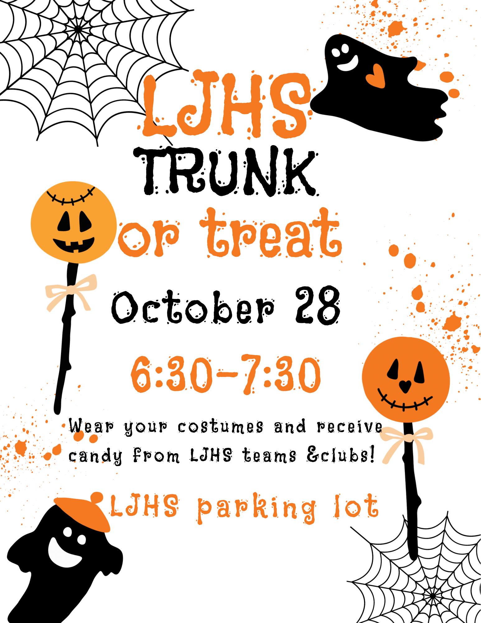 Wear your costumes and receive candy from LJHS teams and clubs at the LJHS Parking Lot.