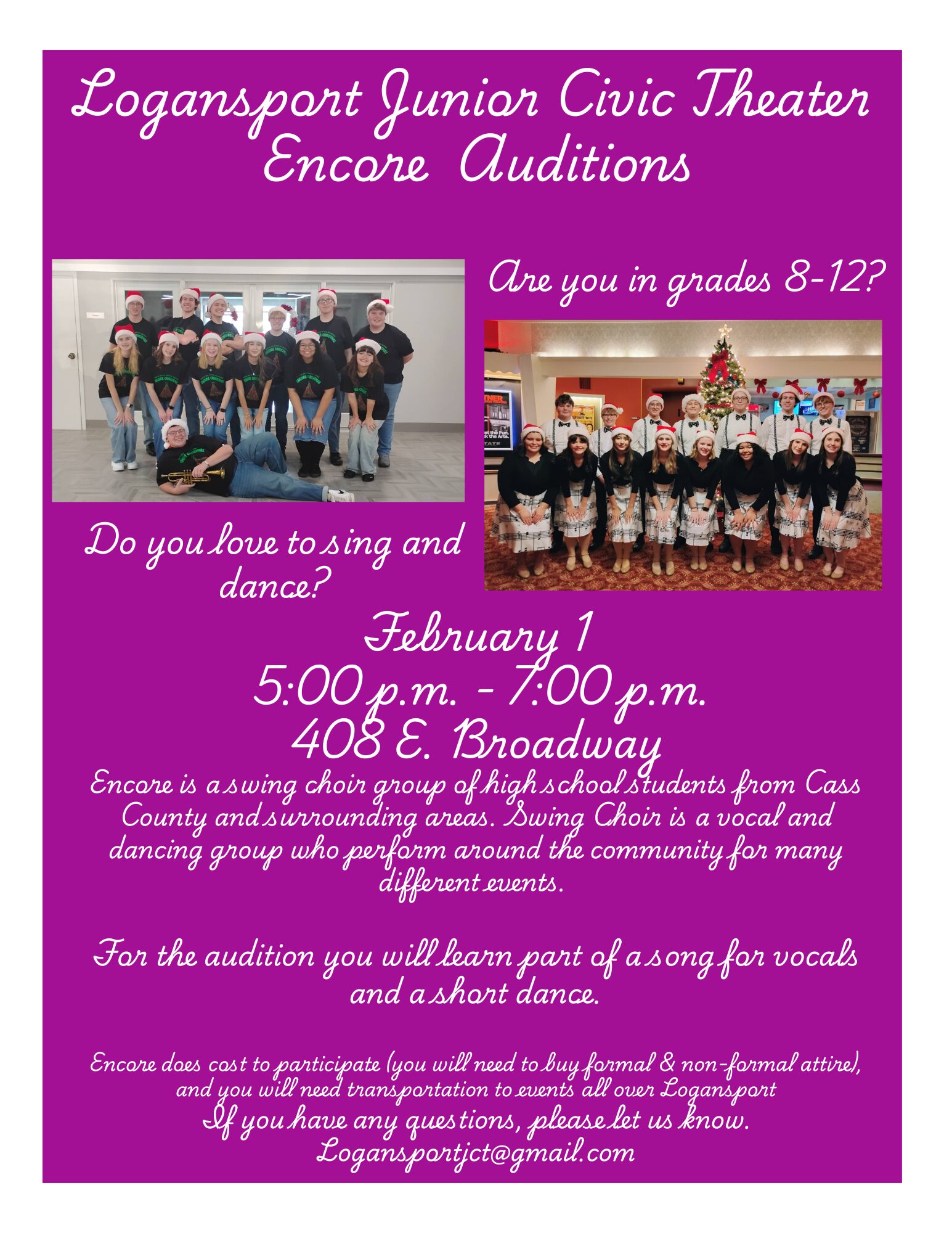 Encore is a swing choir group of high school students from Cass County and surrounding areas. Swing Choir is a vocal and dancing group who perform around the community for many different events.