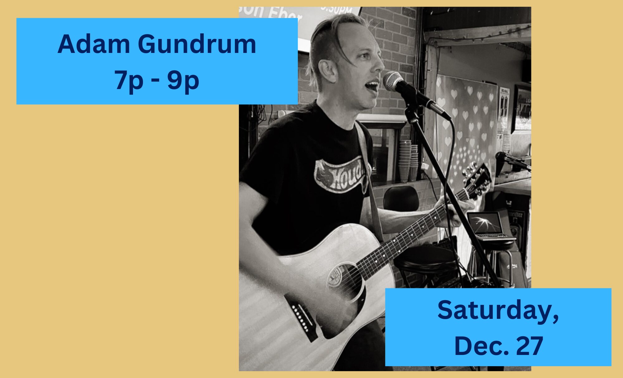 Adam Gundrum performs from 7-9 p.m. at Saturday, Dec. 27, 2025