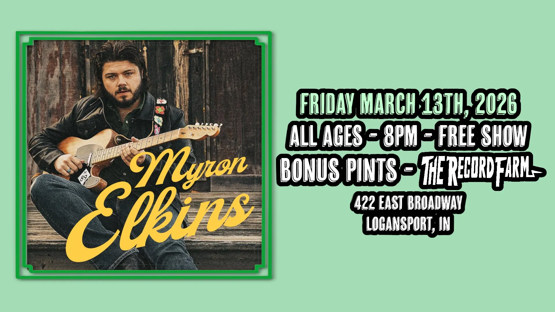 Myron Elkins makes his first appearance in beautiful downtown Logansport! We are very excited to welcome Myron and raw, blues soaked rock n roll! This is a MUST SEE show with heavy riffs, gritty vocals and a rust belt edge!