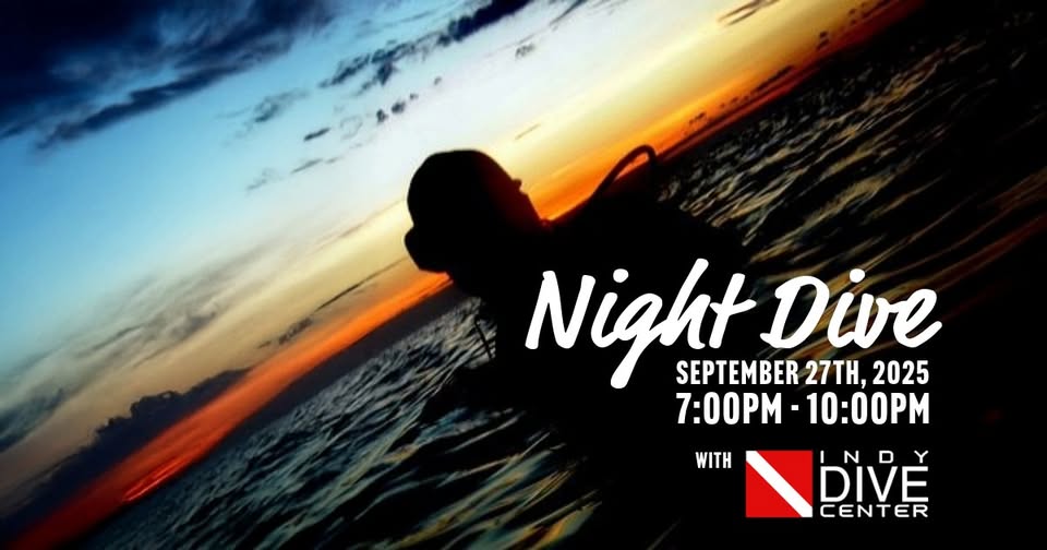 Indy Dive Center at France Park will be open for Night Diving from 7:00pm – 10:00pm on Saturday, September 27th, 2025