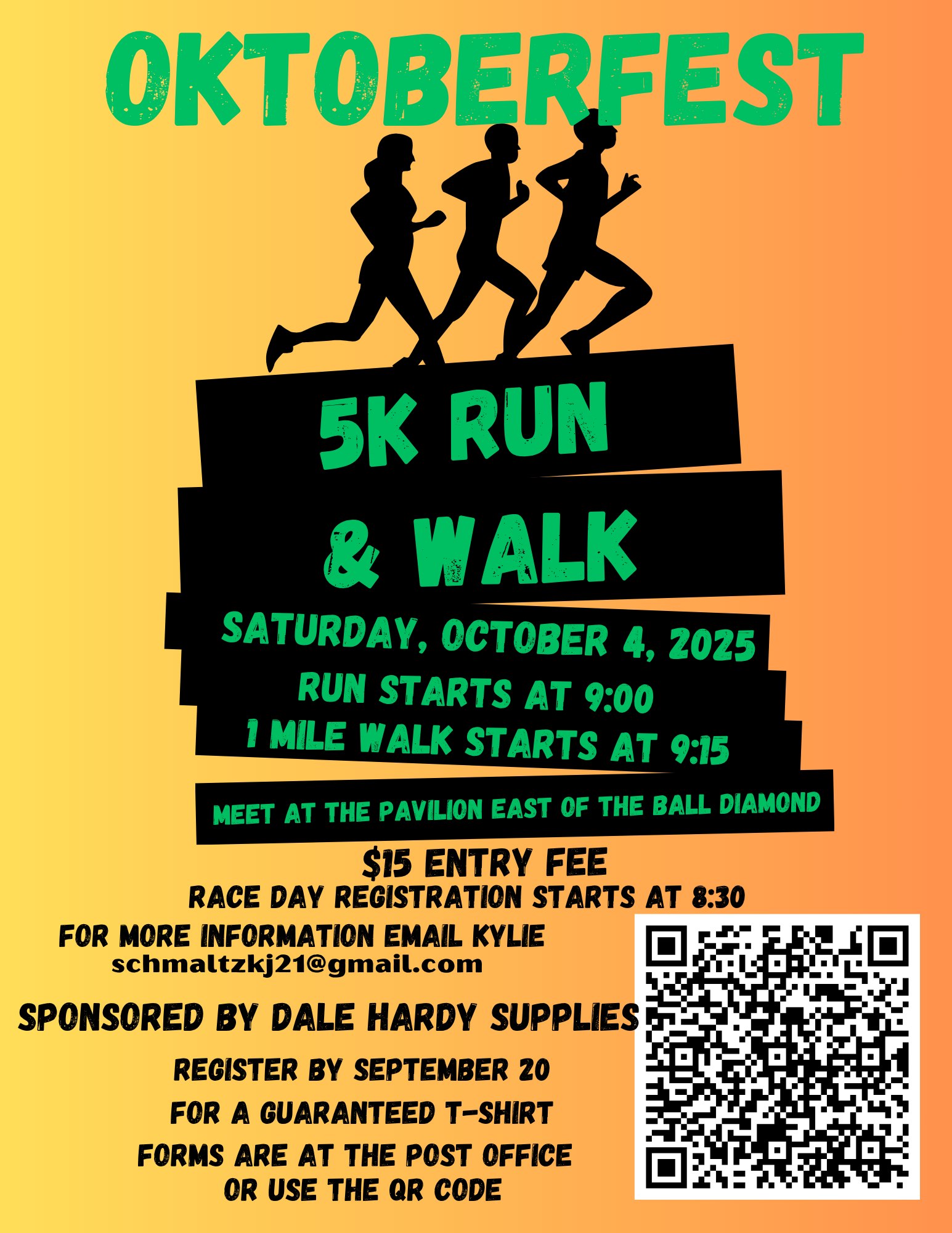 Register by Sept. 20 for a guaranteed t-shirt. Forms are at the Royal Center post office, or use the QR code or Register here