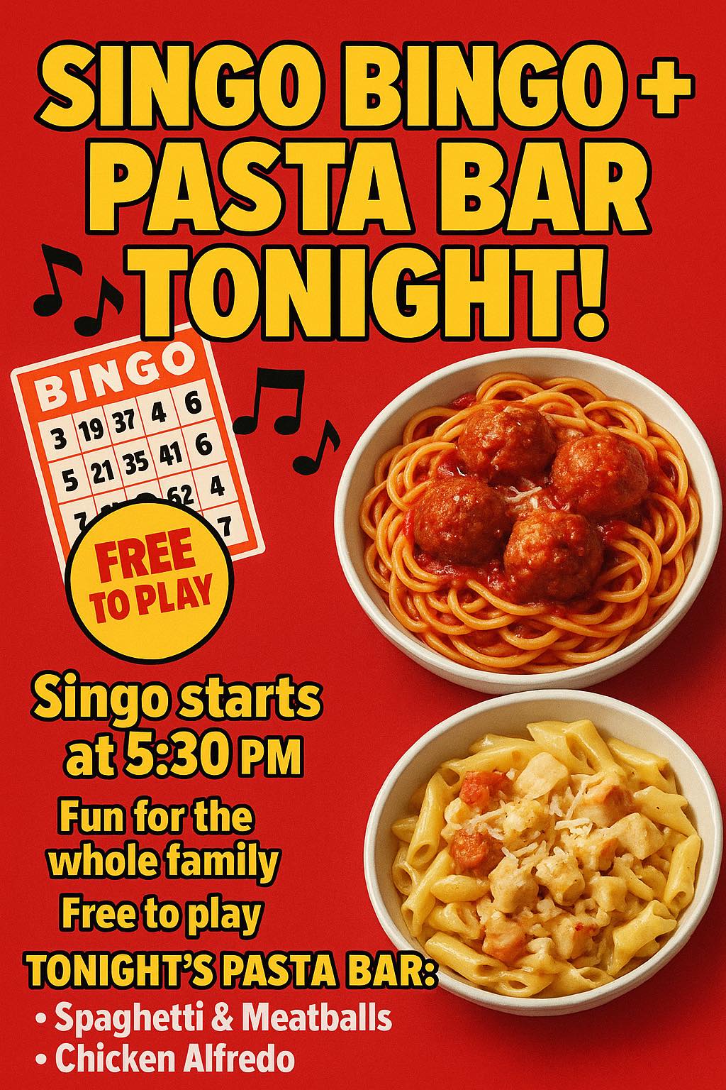 Tonight’s Pasta Bar: Spaghetti and Meatballs, Chicken Alfredo