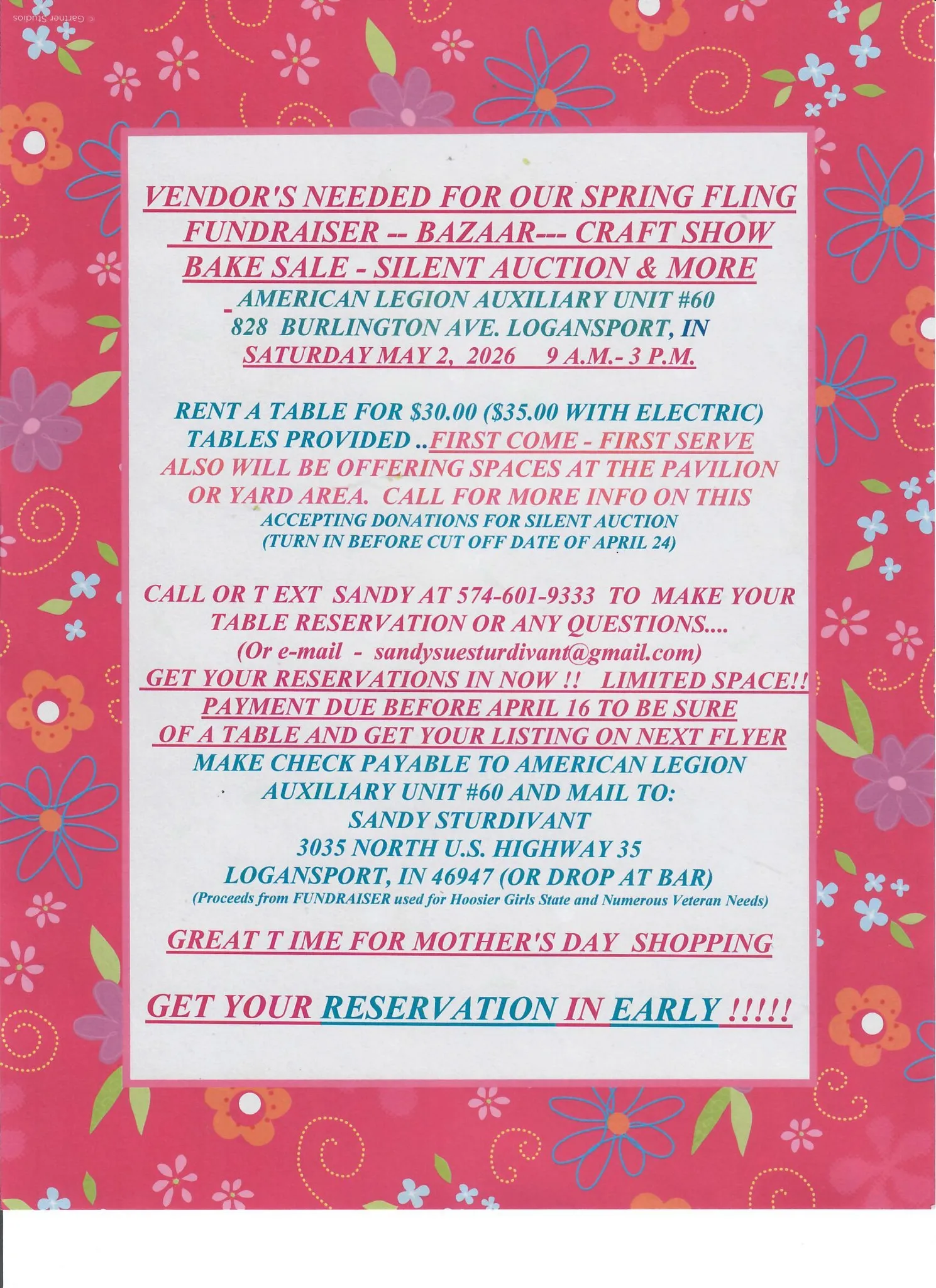 VENDOR’S NEEDED FOR OUR SPRING FLING