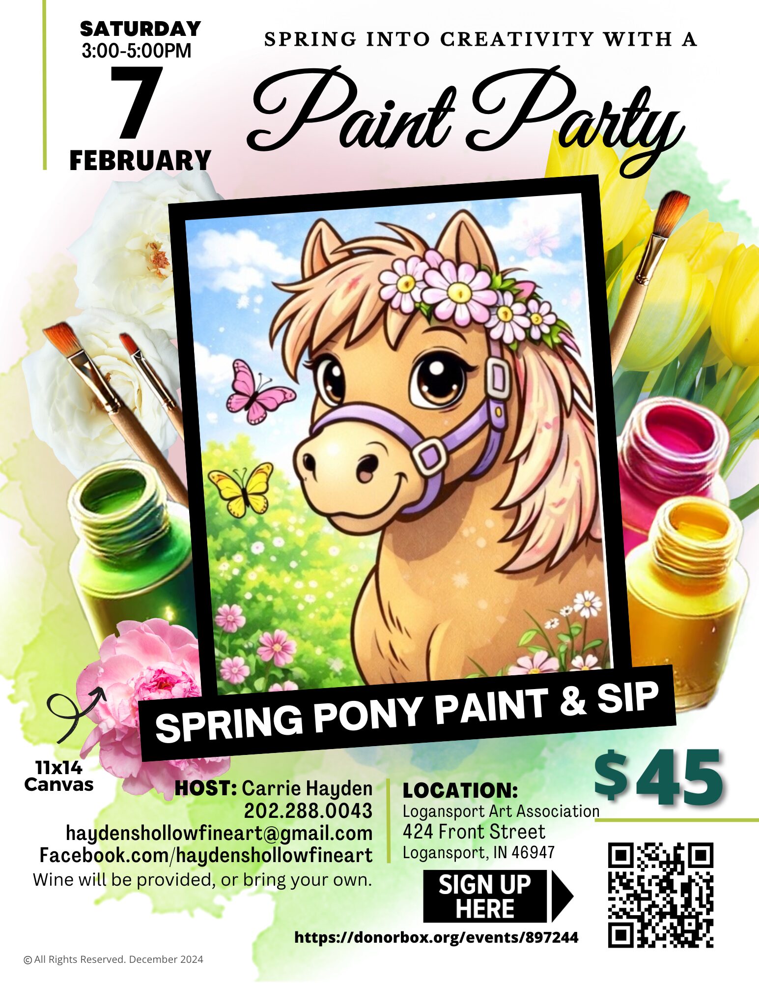 🎨🐴 Paint this sweet pony celebrating spring with flowers, fresh colors, and lots of personality while enjoying your favorite beverage 🍺🍸🍷🥃☕️! Price includes supplies and wine will be provided. Bring your own if you don’t care for wine🍷.