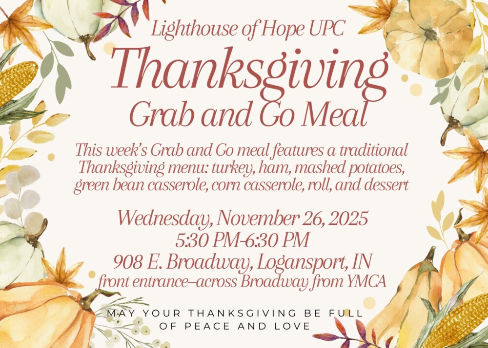 This week’s Grab and Go meal features a traditional Thanksgiving menu: turkey, ham, mashed potatoes, green bean casserole, corn casserole, roll and dessert.