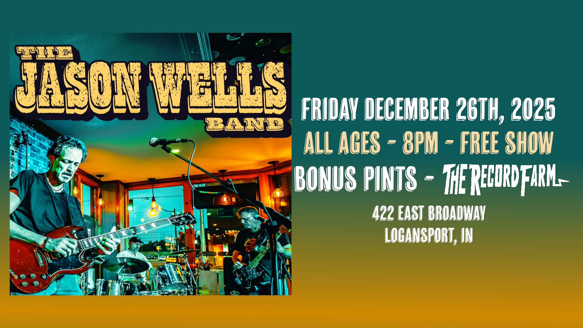 Shake off those post-holiday blues and grab an ice cold beer while one of the area’s BEST rock n roll bands and best guitarists SHRED the night away! Always the perfect vibe when the Jason Wells Band comes to town!