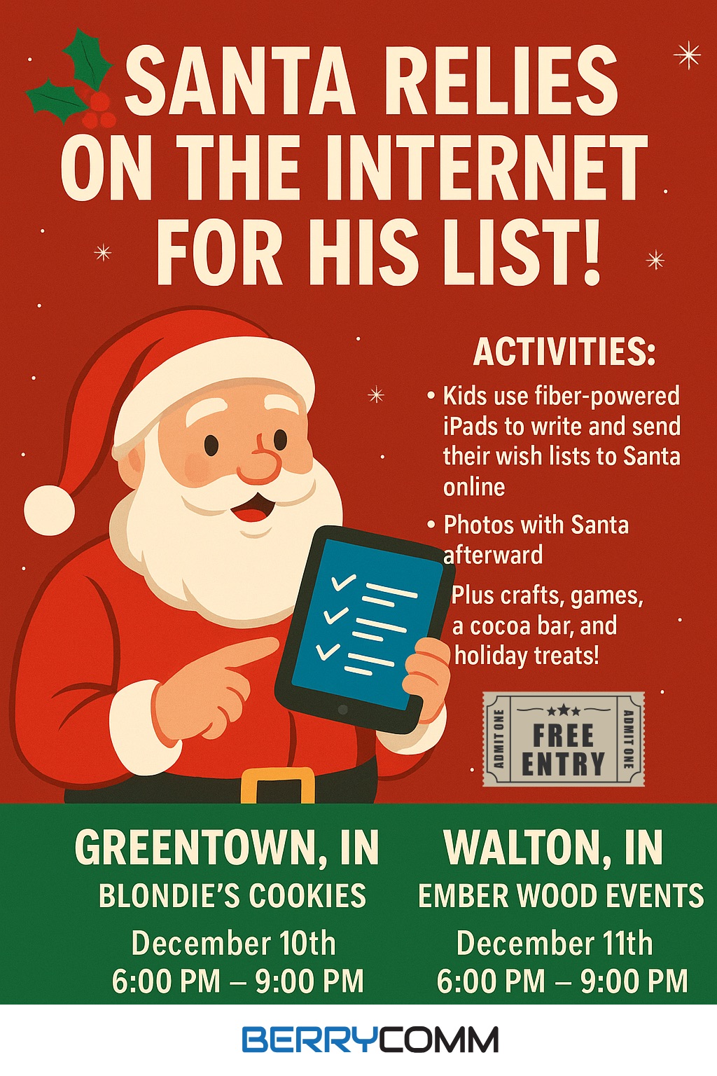 Santa’s going high-tech this year! Write your wish list on an iPad, snap pics with Santa, enjoy crafts, games, cocoa, & holiday treats