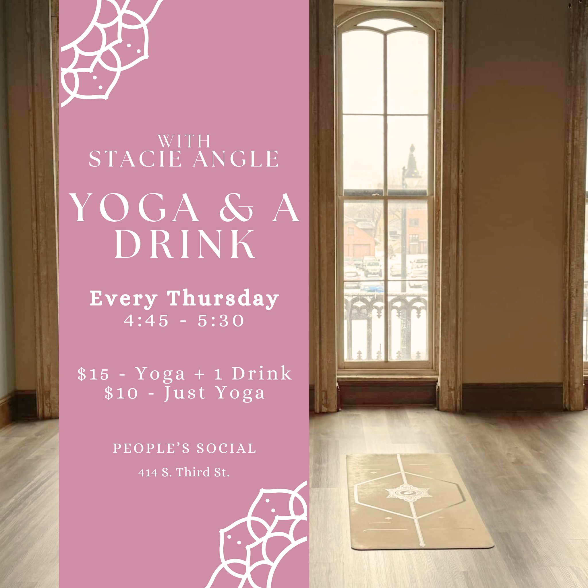 $15 – Yoga + 1 Drink OR $10 – Just Yoga