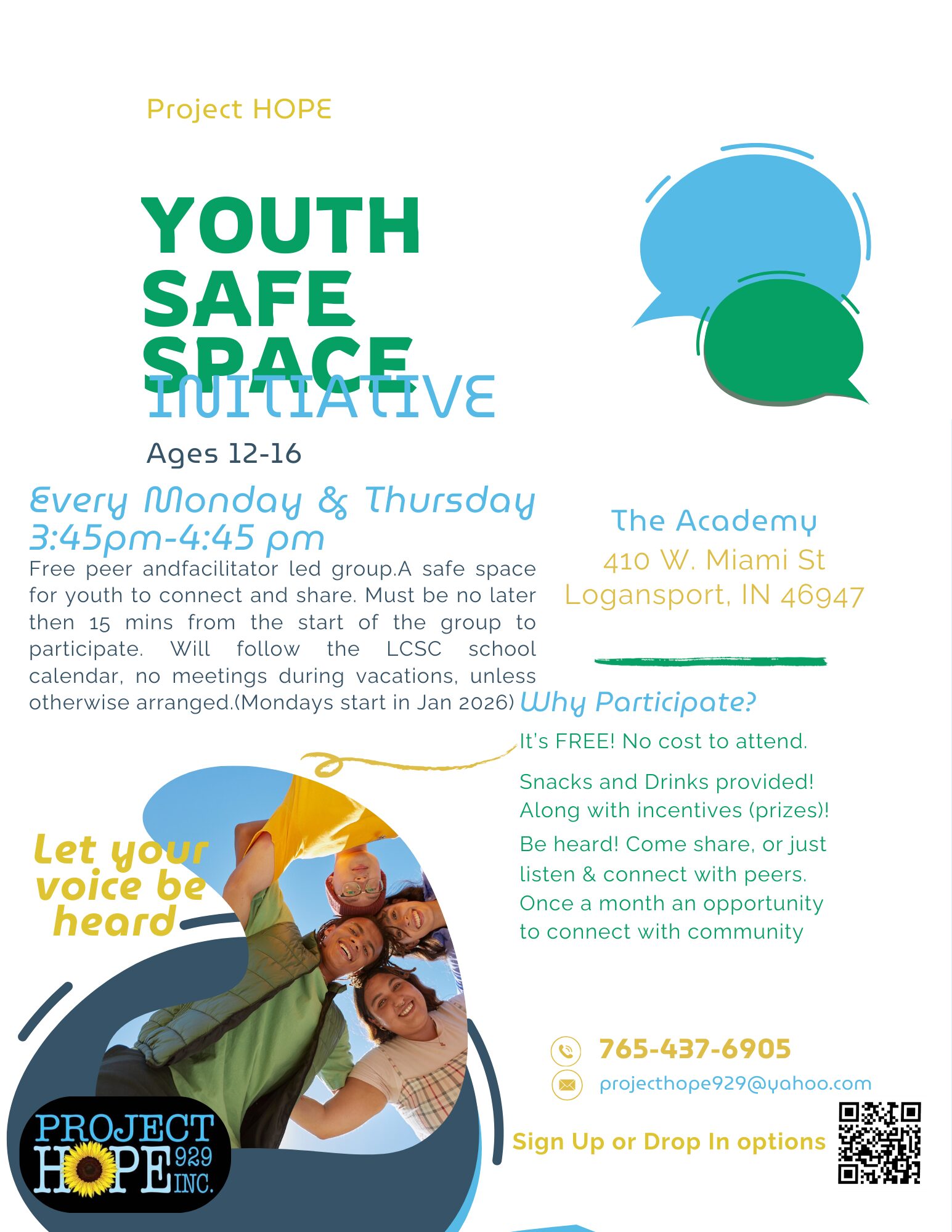 Free peer and facilitator led group. A safe space for youth to connect and share. Must be no later